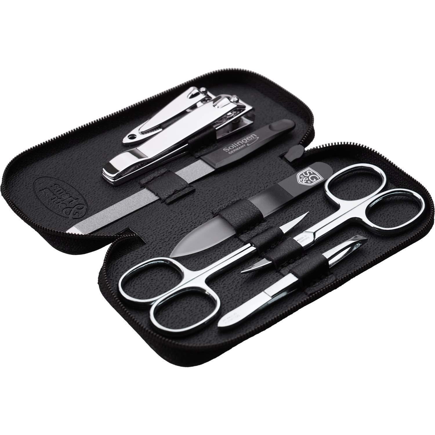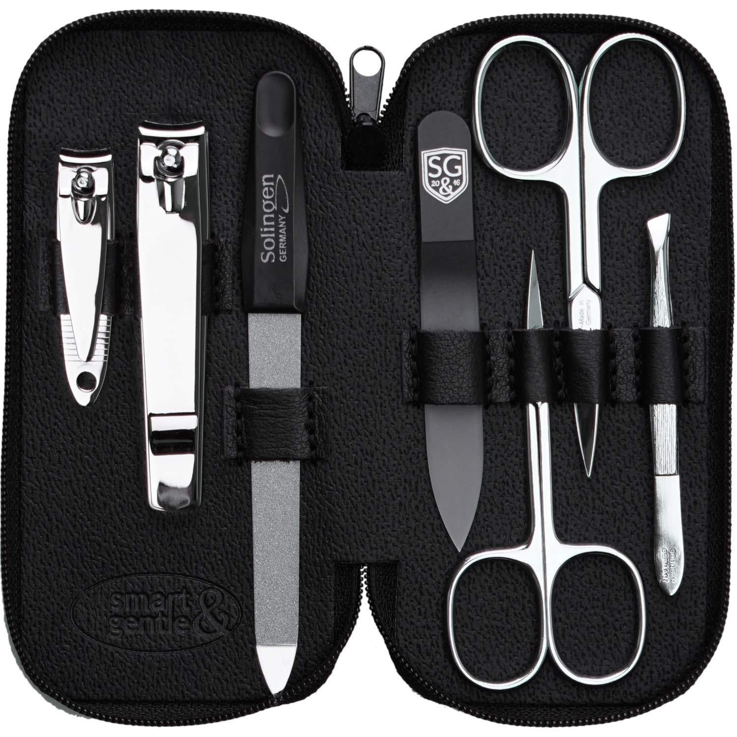 Manicure set made in Germany - 7 piece stainless steel exclusive finger & toe nail clipper set in luxury leather case, made in Solingen Germany