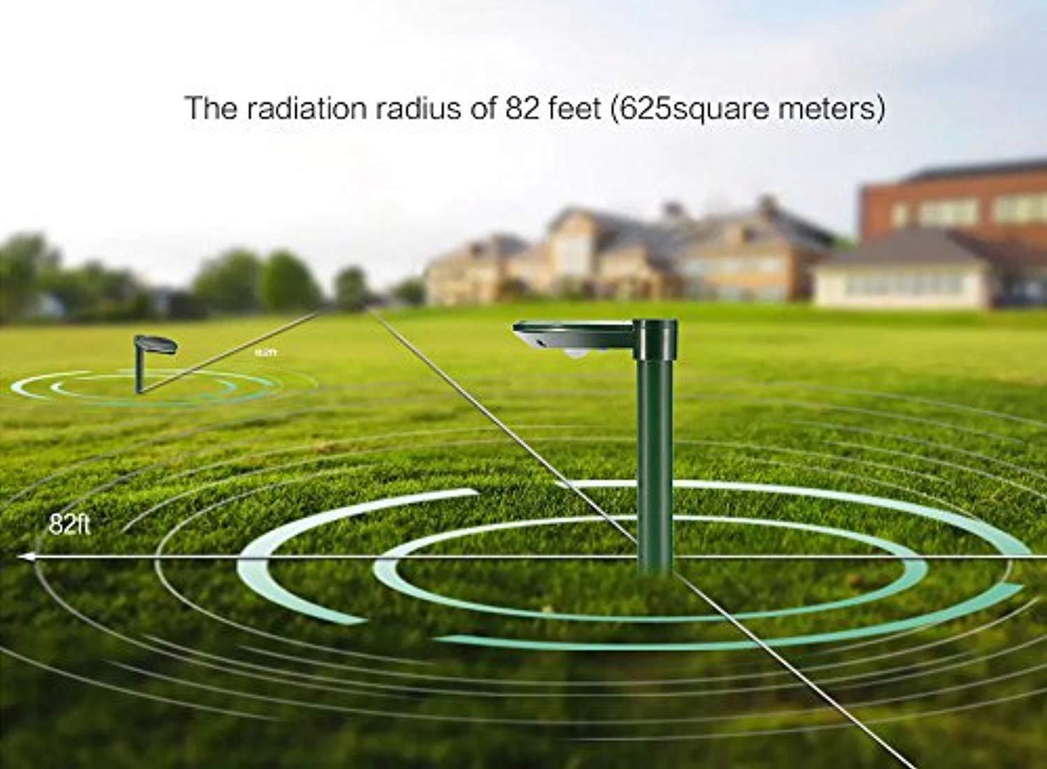 LONG RANGE:A solar powered sonic snake repellent transmits its signal in all directions approx 49 ft and covers an area of approx 6729sq ft (625sq meters), so they can be placed approx 98ft (30m) apart of each in high risk areas, it is always recommended to use two or more units to get the best results. It usually takes 2-4 weeks for mole, snake, gopher, vole and other burrowing rodents to leave the area.