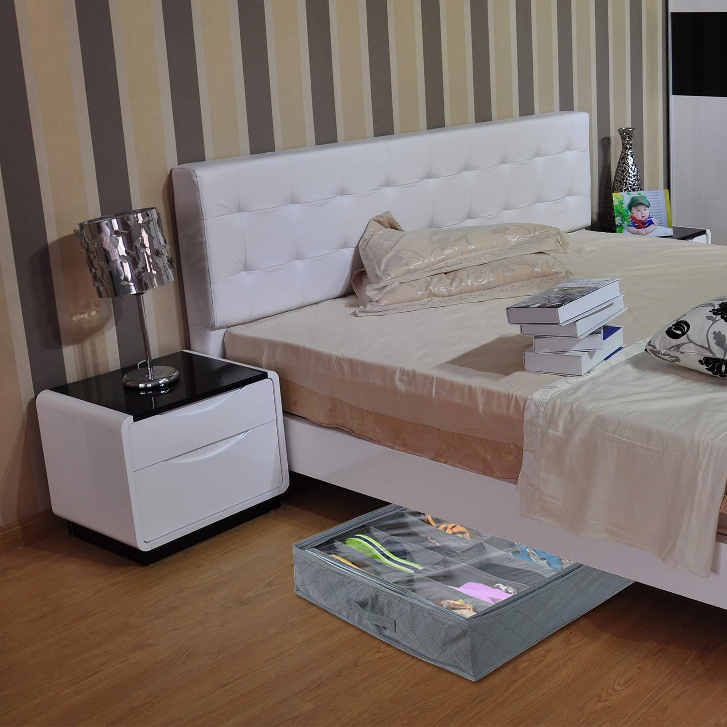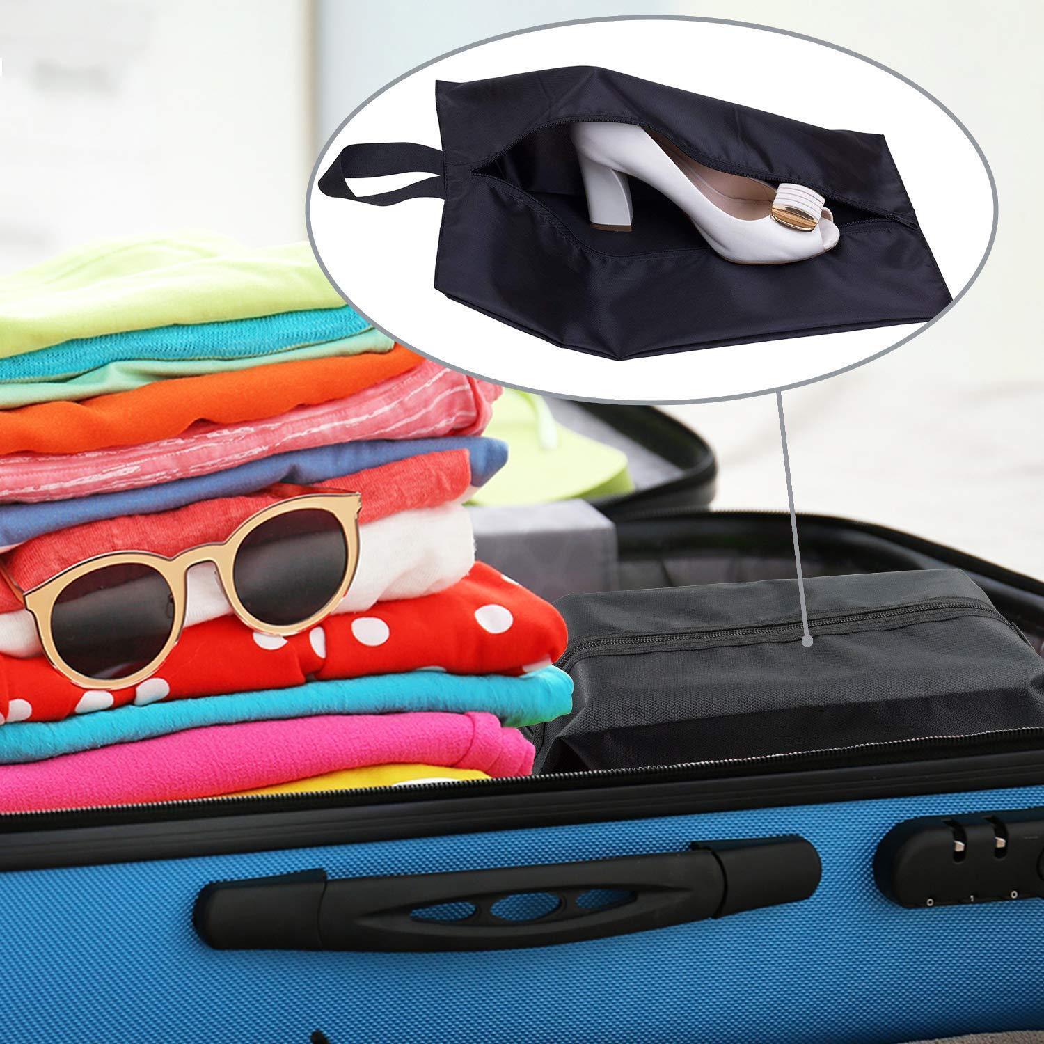 MENOLY 12 Pairs Under Bed Shoe Organizer 2 Pack, Underbed Shoes Storage Boxes Drawer Dividers Shoe Storage Container (Gray) with 2 Pack Black Travel Shoe Bags