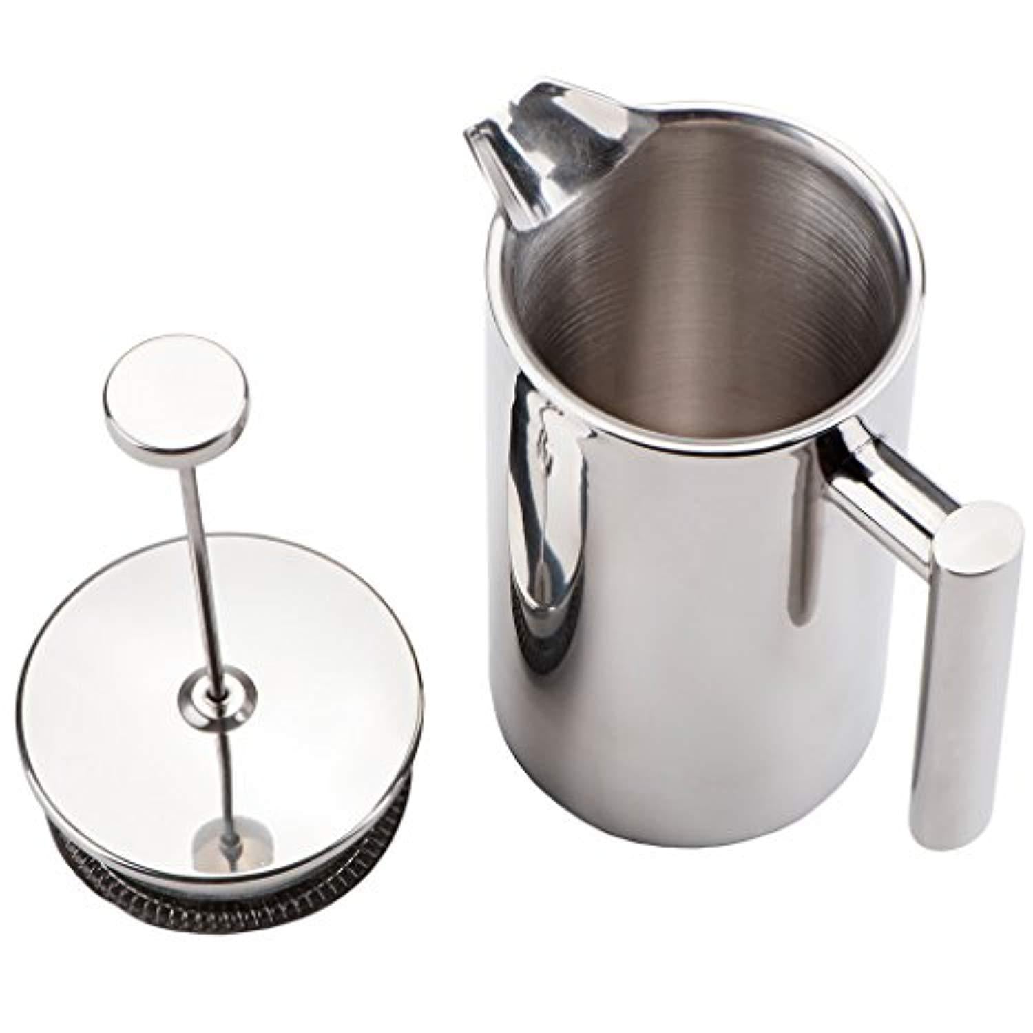 ✔ High Quality Double Wall Stainless Steel: The high-quality French press tea and coffee brewer 34 oz (1000 ml or 1 Liter) coffee pot is made from high-quality 18/10 stainless steel and BPA free. The doubled walled, insulated pot will keep your coffee or tea hot for up to 2 hours. Dishwasher-safe.