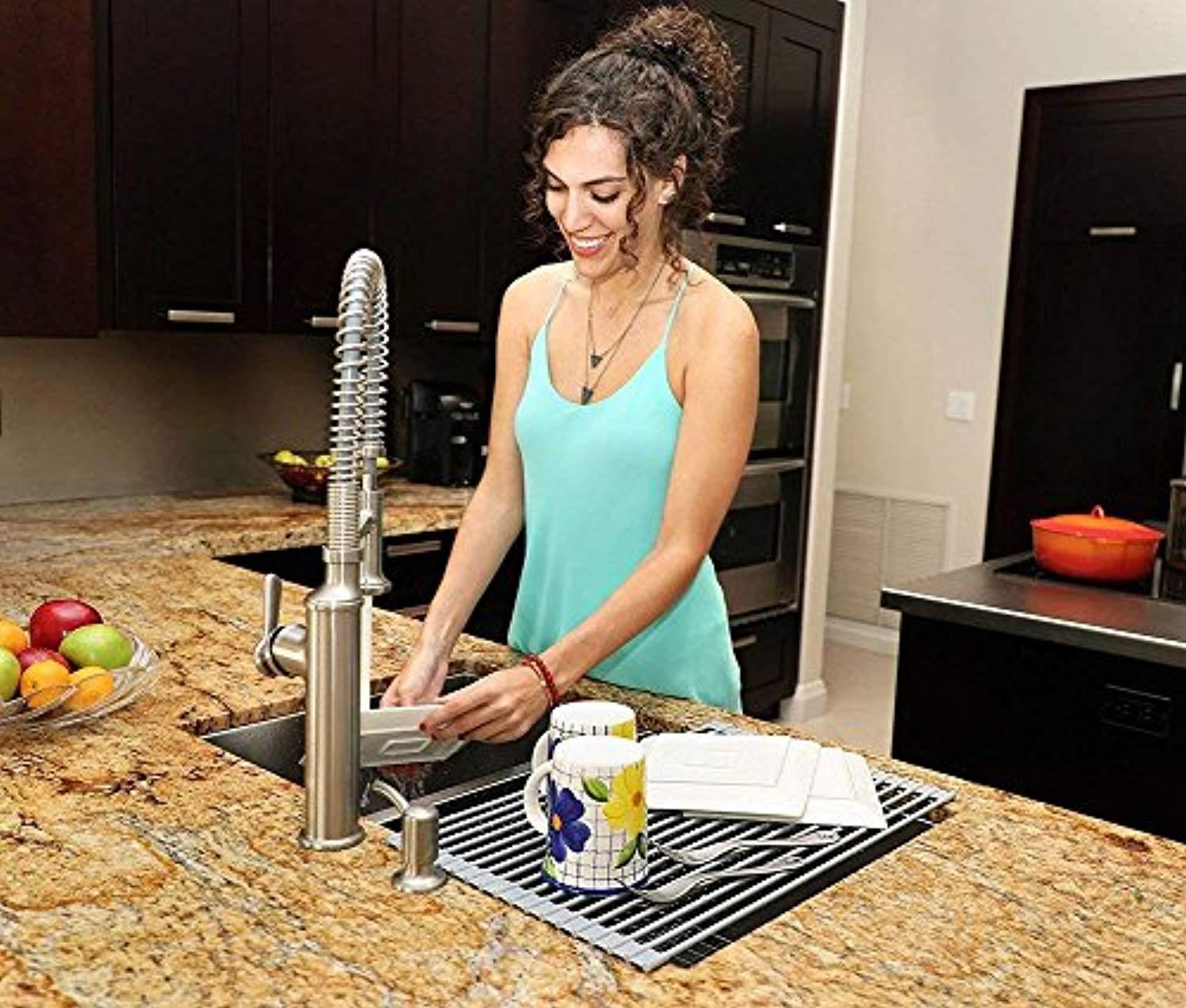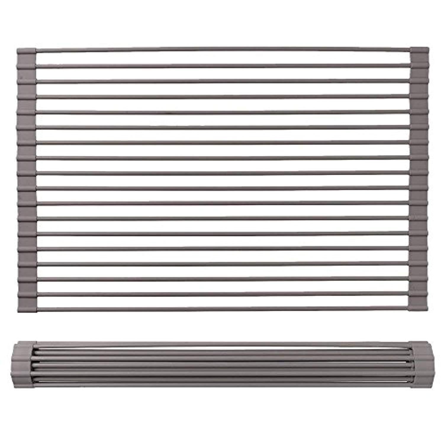 MOHICO Dish Rack Roll-up Dish Drying Rack Stainless Steel Over the Sink Countertop Kitchen Rack Drainer Multipurpose Heat Resistant with Anti Slip Silicone Cover-Large 20 1/2(L) x 13"(W)