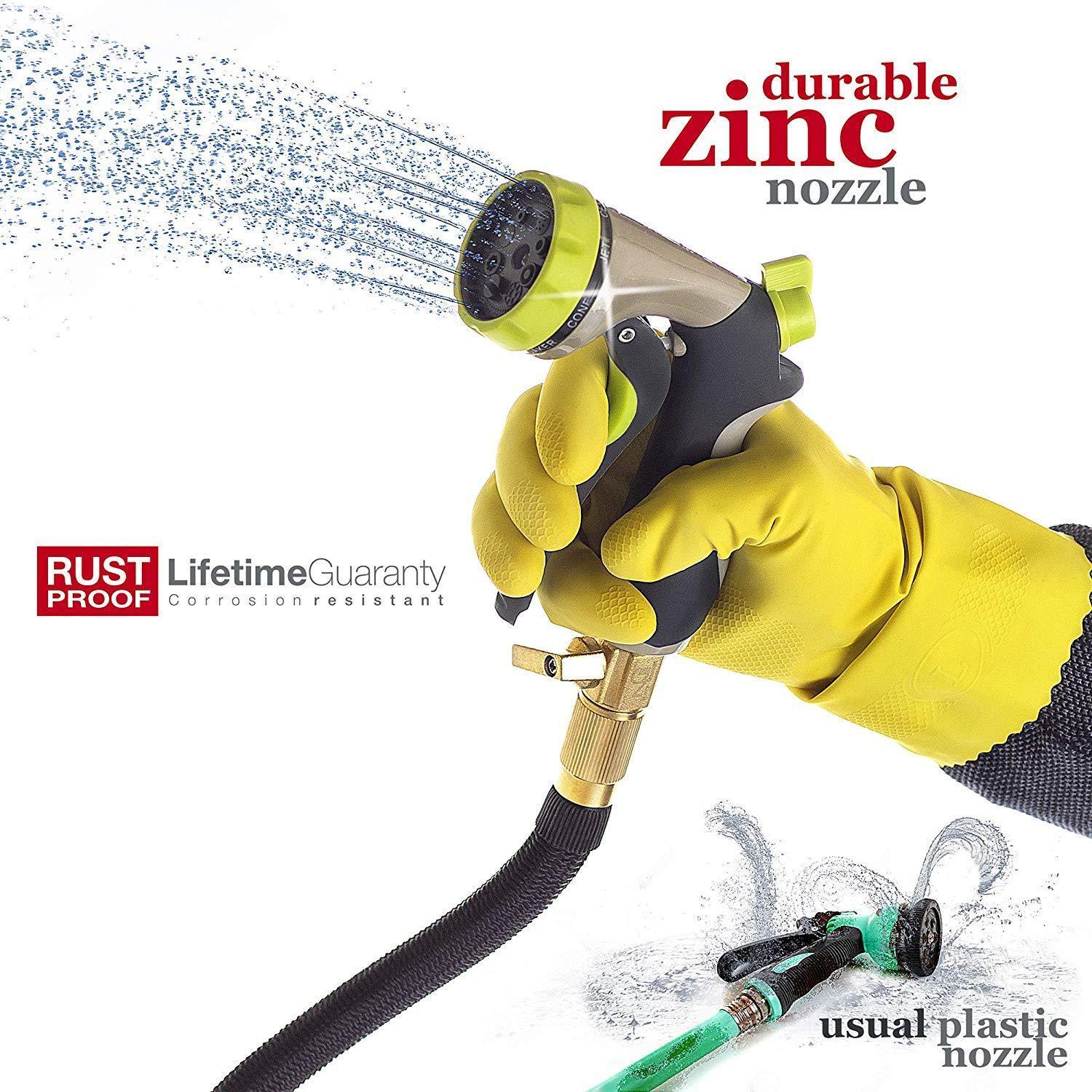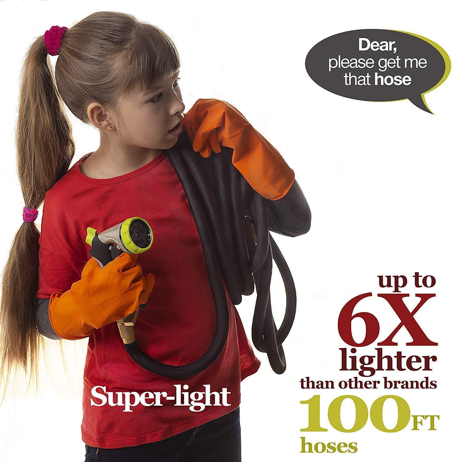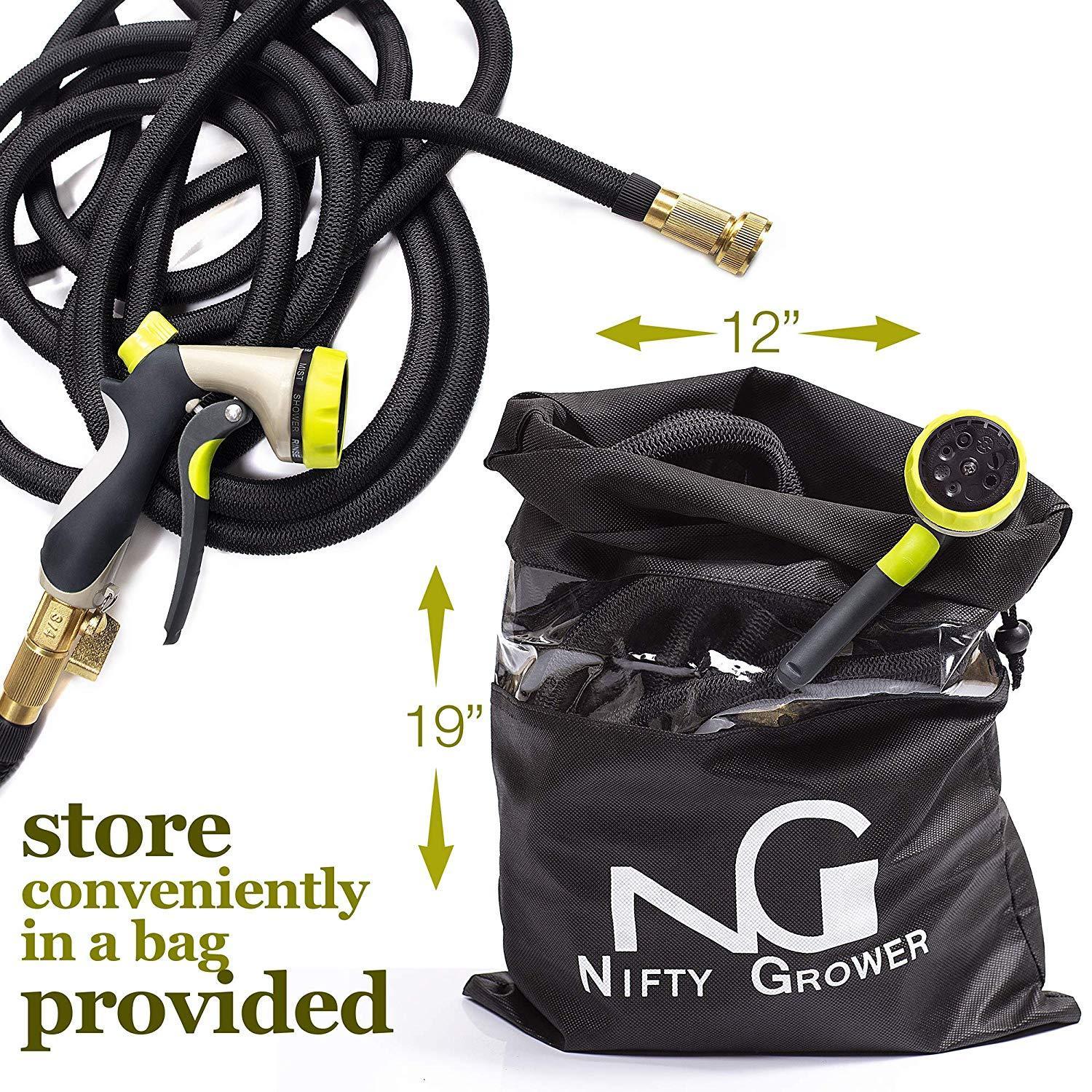 Nifty Grower 100ft Garden Hose - All New Expandable Water Hose with Double Latex Core, 3/4" Solid Brass Fittings, Extra Strength Fabric - Flexible Expanding Hose with Metal 8 Function Spray Nozzle