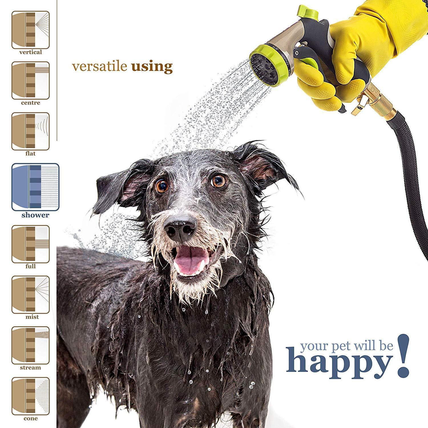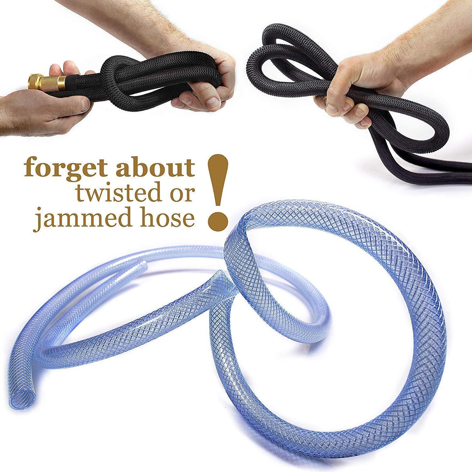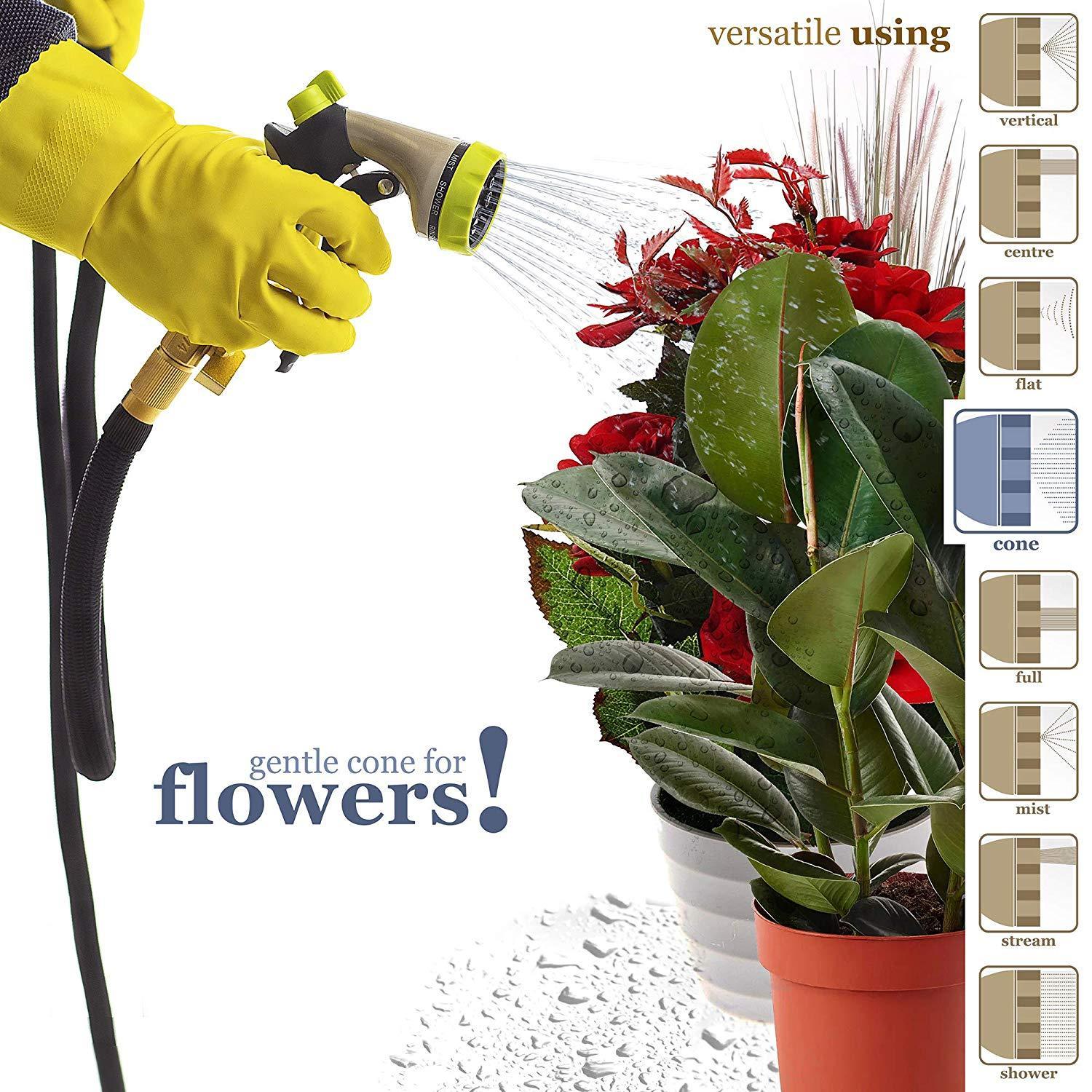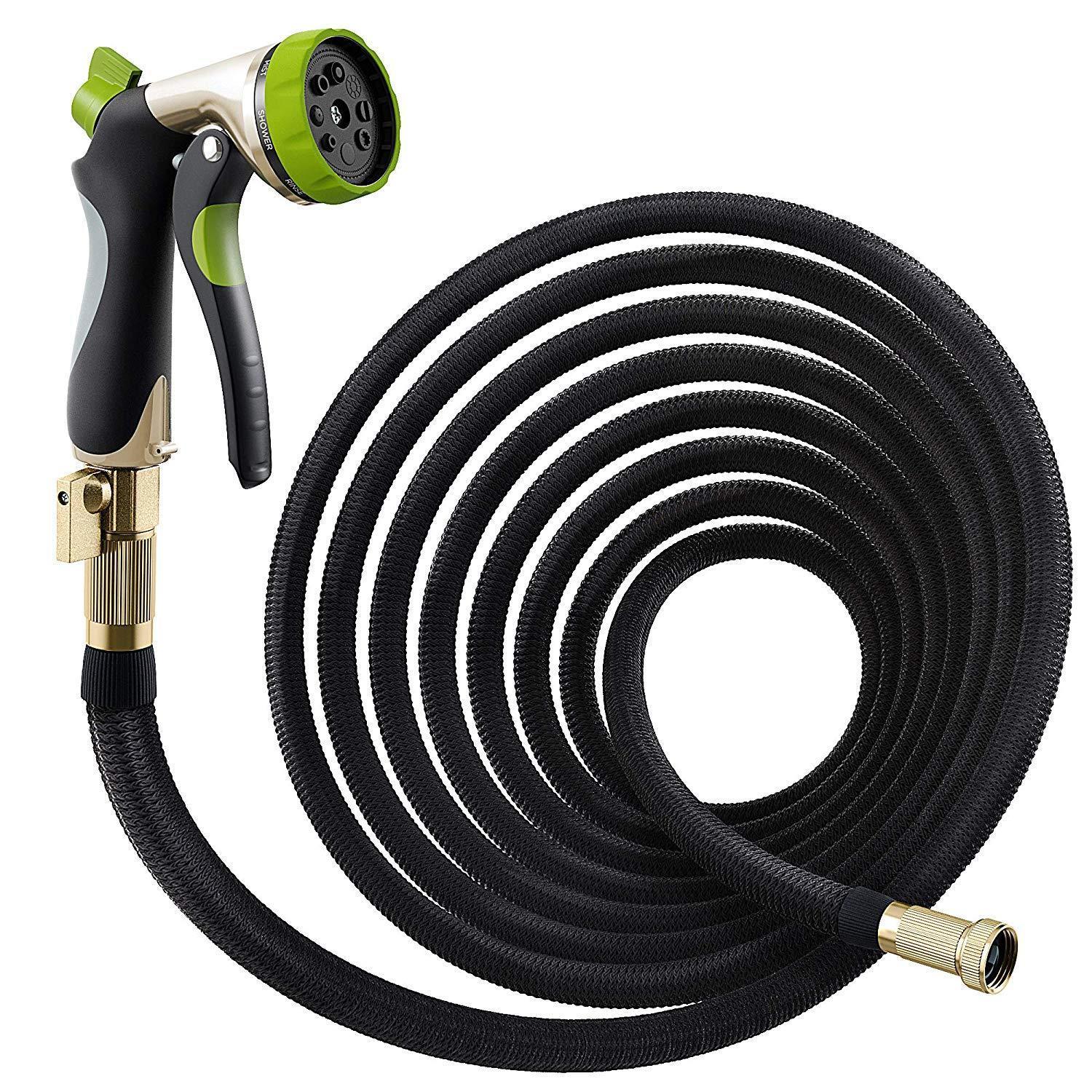Nifty Grower 100ft Garden Hose - All New Expandable Water Hose with Double Latex Core, 3/4" Solid Brass Fittings, Extra Strength Fabric - Flexible Expanding Hose with Metal 8 Function Spray Nozzle