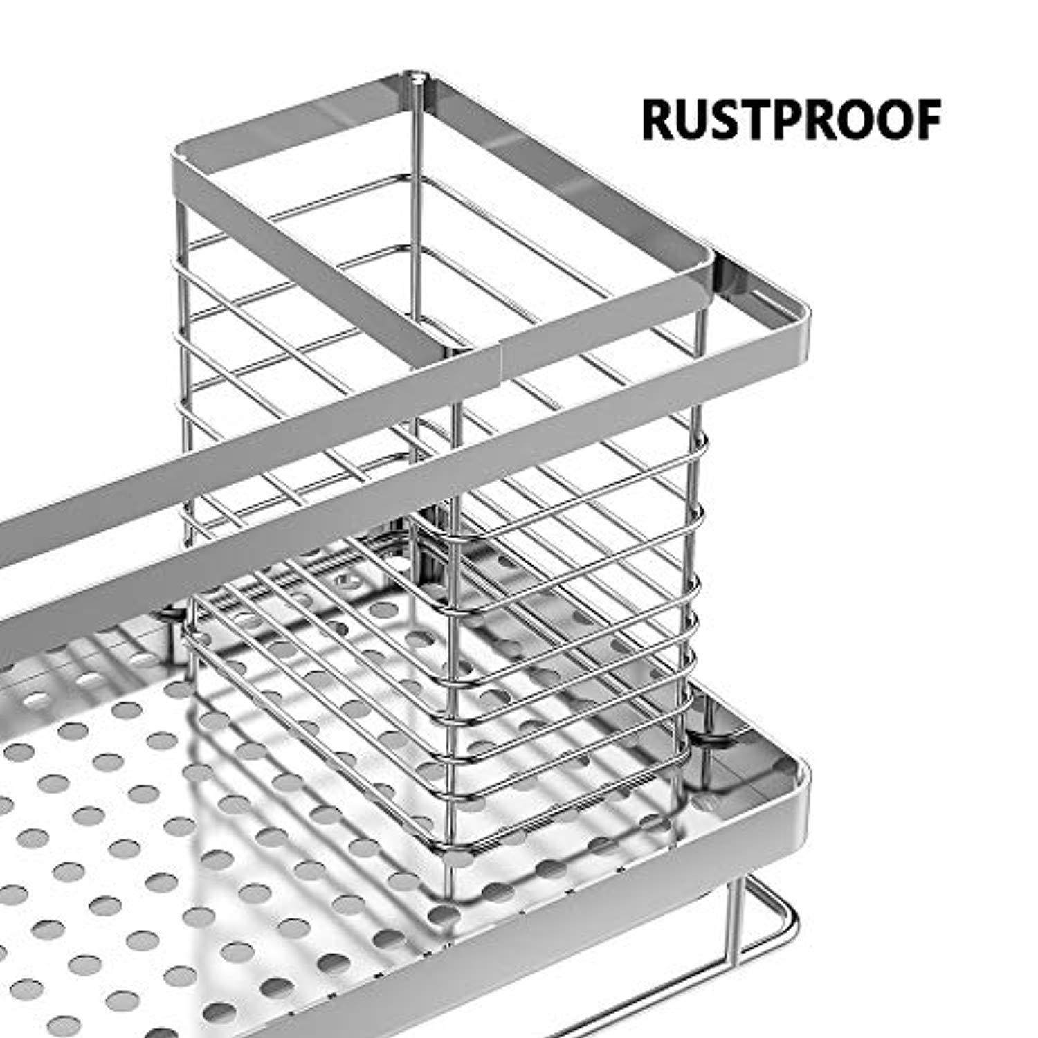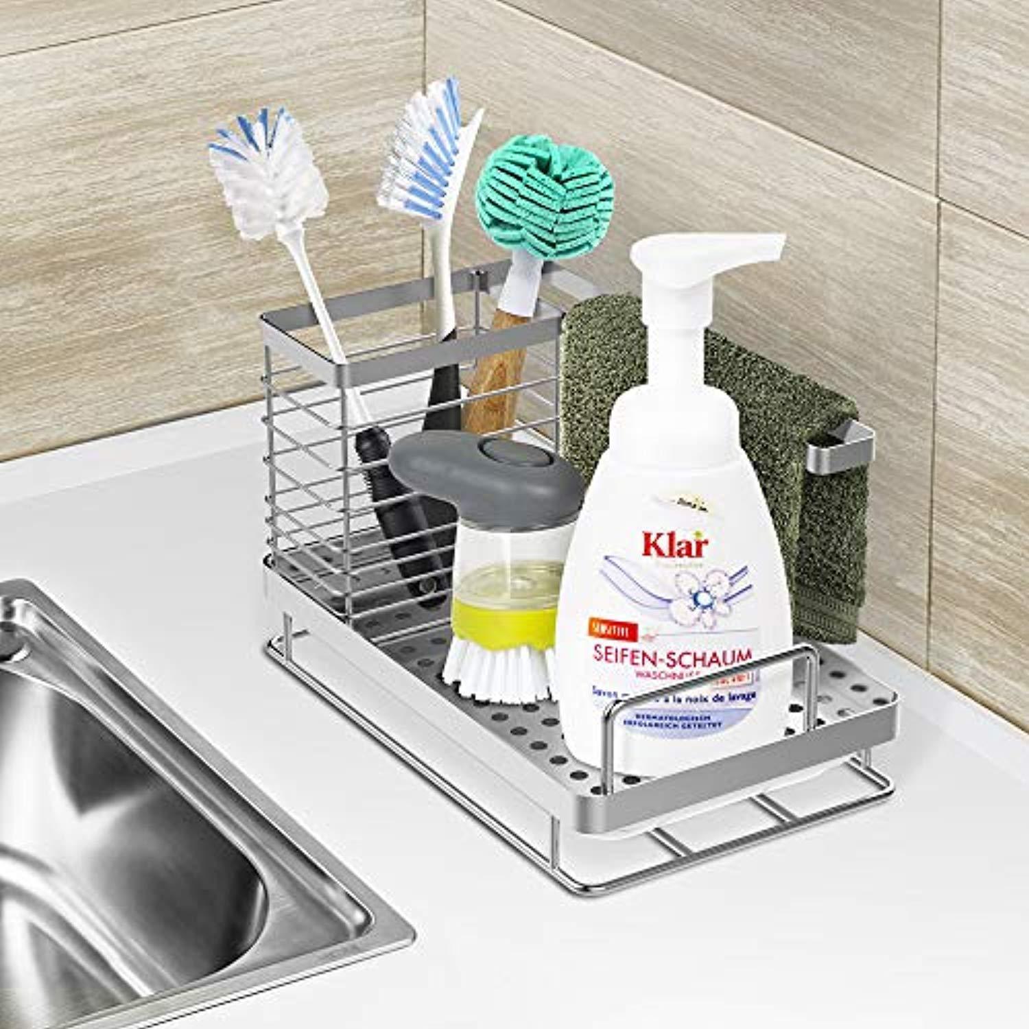 ODesign Kitchen Sink Caddy Organizer Sponge Soap Brush Holder with Drain Pan Stainless Steel ODesign