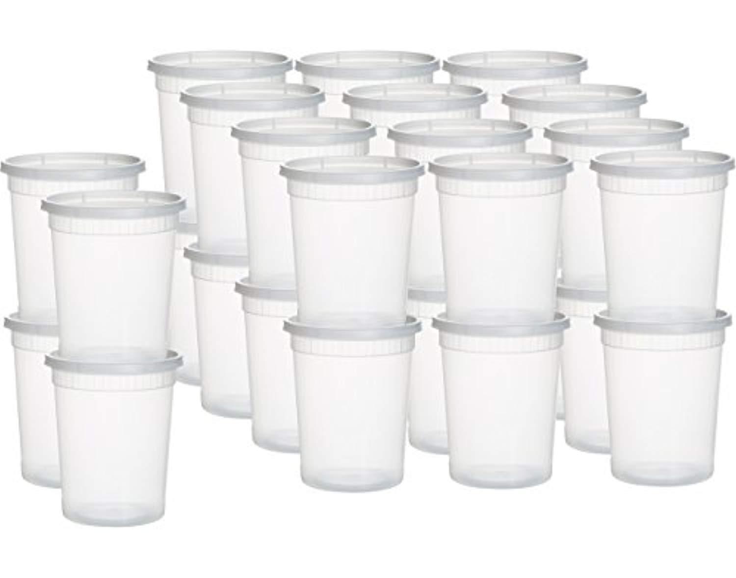 - This 24 pack of 32 oz round translucent Large plastic containers have easy to seal lids that are ideal for homes, delis and restaurants.