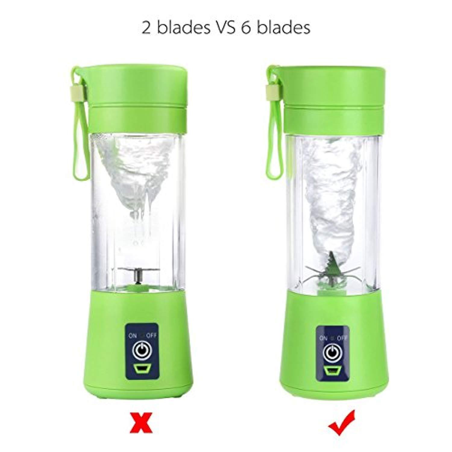 Portable Personal Blender, Household Juicer fruit shake Mixer -Six Blades, 380ml Baby cooking machine with USB Charger Cable (Green)