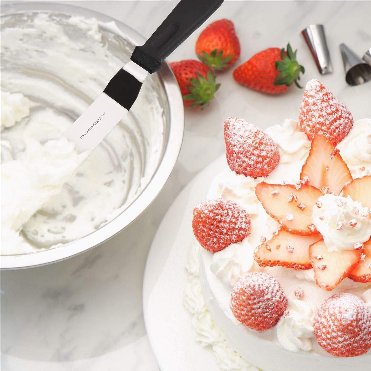 PUCKWAY Angled Icing Spatula, Stainless Steel Offset Spatula, Cake Spatula Set of 2 Black 6, 8 inch