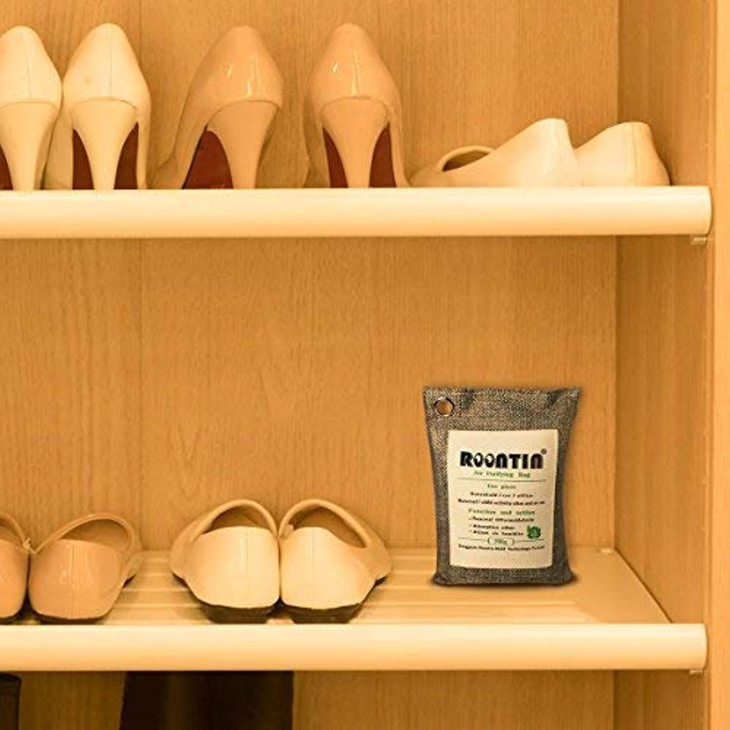 MAINTAIN FRESH & ODOR FREE ENVIRONMENT: The Roontin air purifier bag is easy and convenient way to maintain a fresh and dry air environment life, the inside activated carbon plus bamboo charcoal will be absorbing all odors, leave the health odors for your daily life.