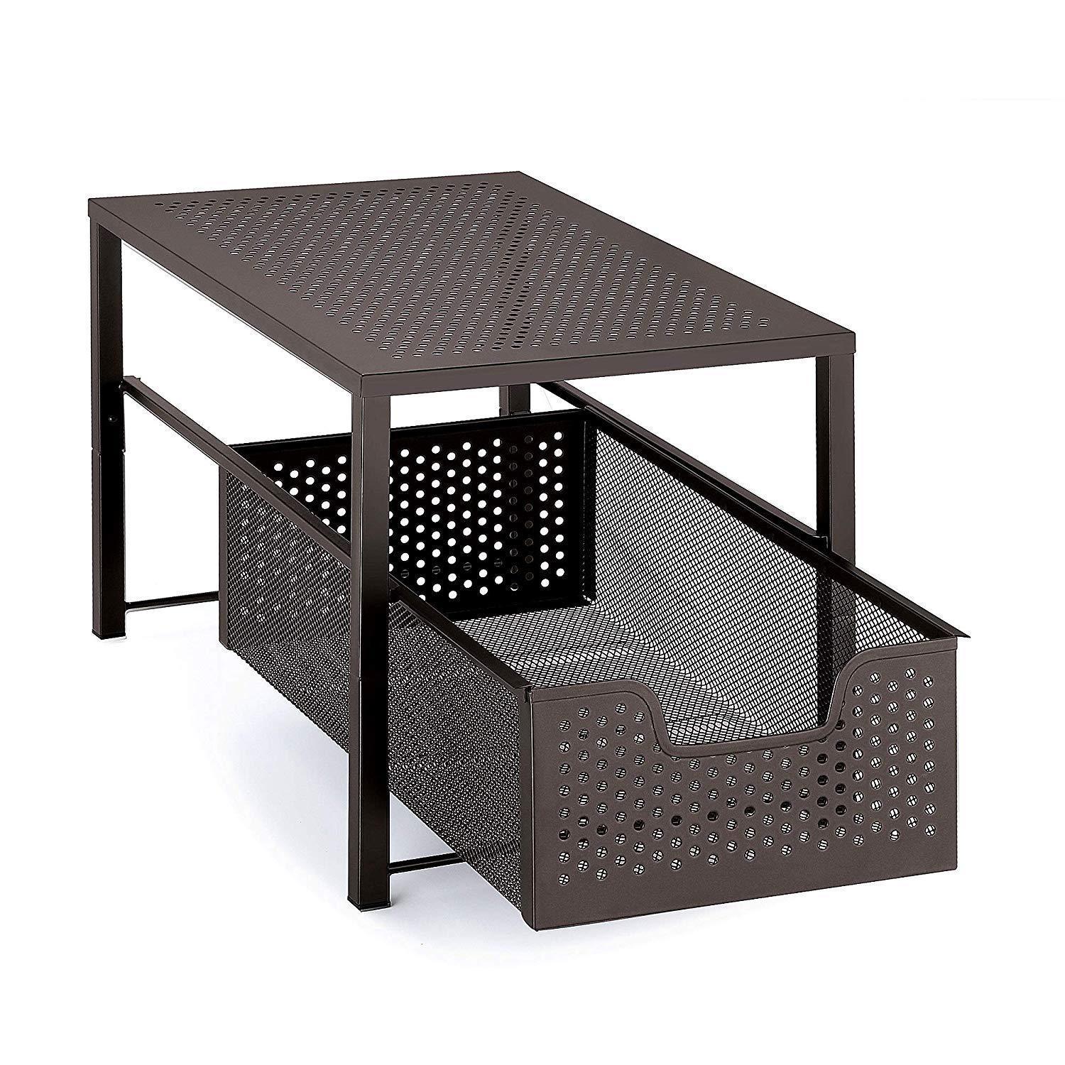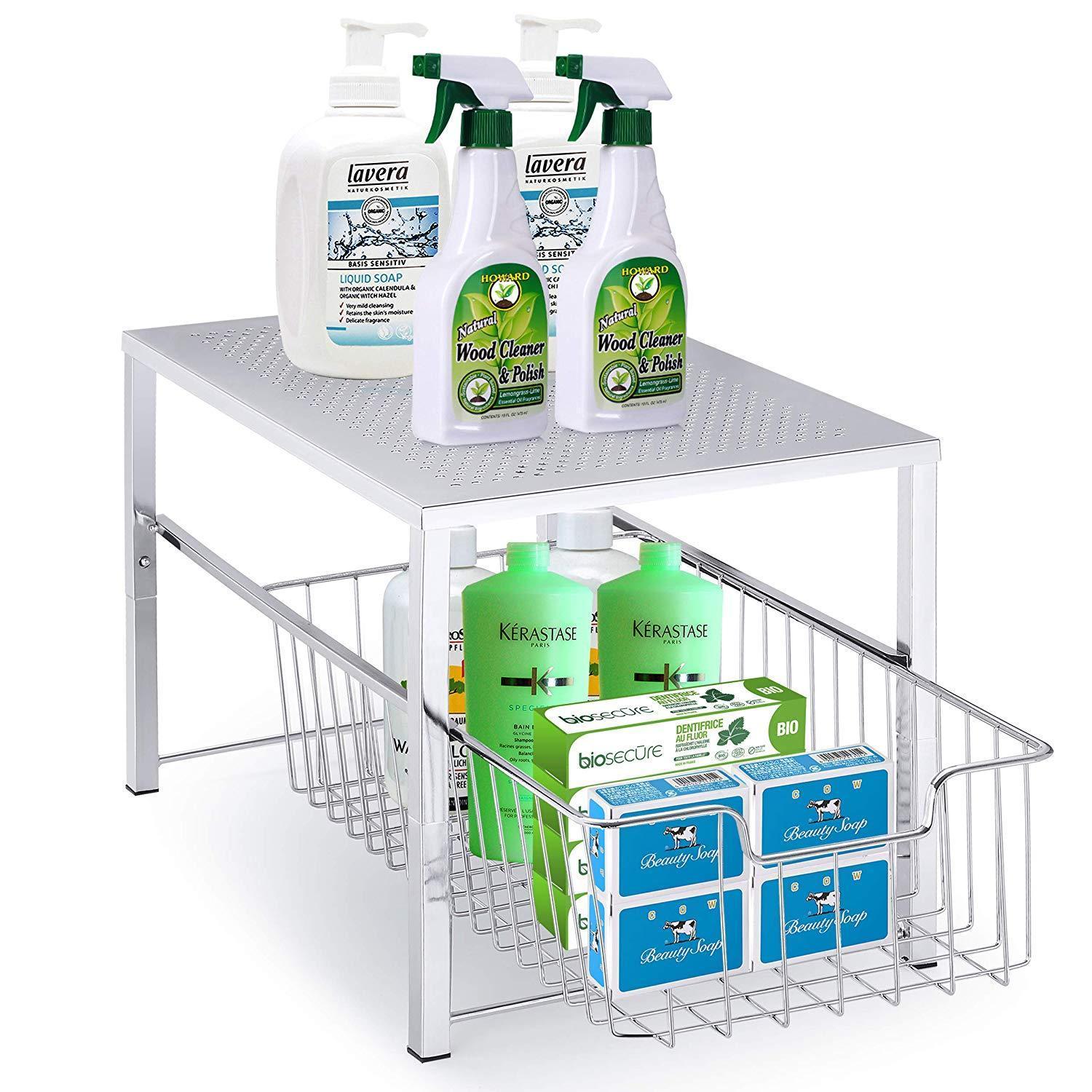 【Space-Saving Organizer】Keep supplies and essentials neatly stored and easily visualize and access storage. Great for organize increase extra storage space in your kitchen Bathroom office 【Stackable Design】Include EVA foam stickers and stacked firmly without scratching the top surface. Stack up to multiple units that maximizes storage space in the same footprint 【Stability Construction】Easy to assemble; Made of sturdy durable metal construction with chrome plating; PET anti-slip pads to prevent it from sliding or scratching surfaces