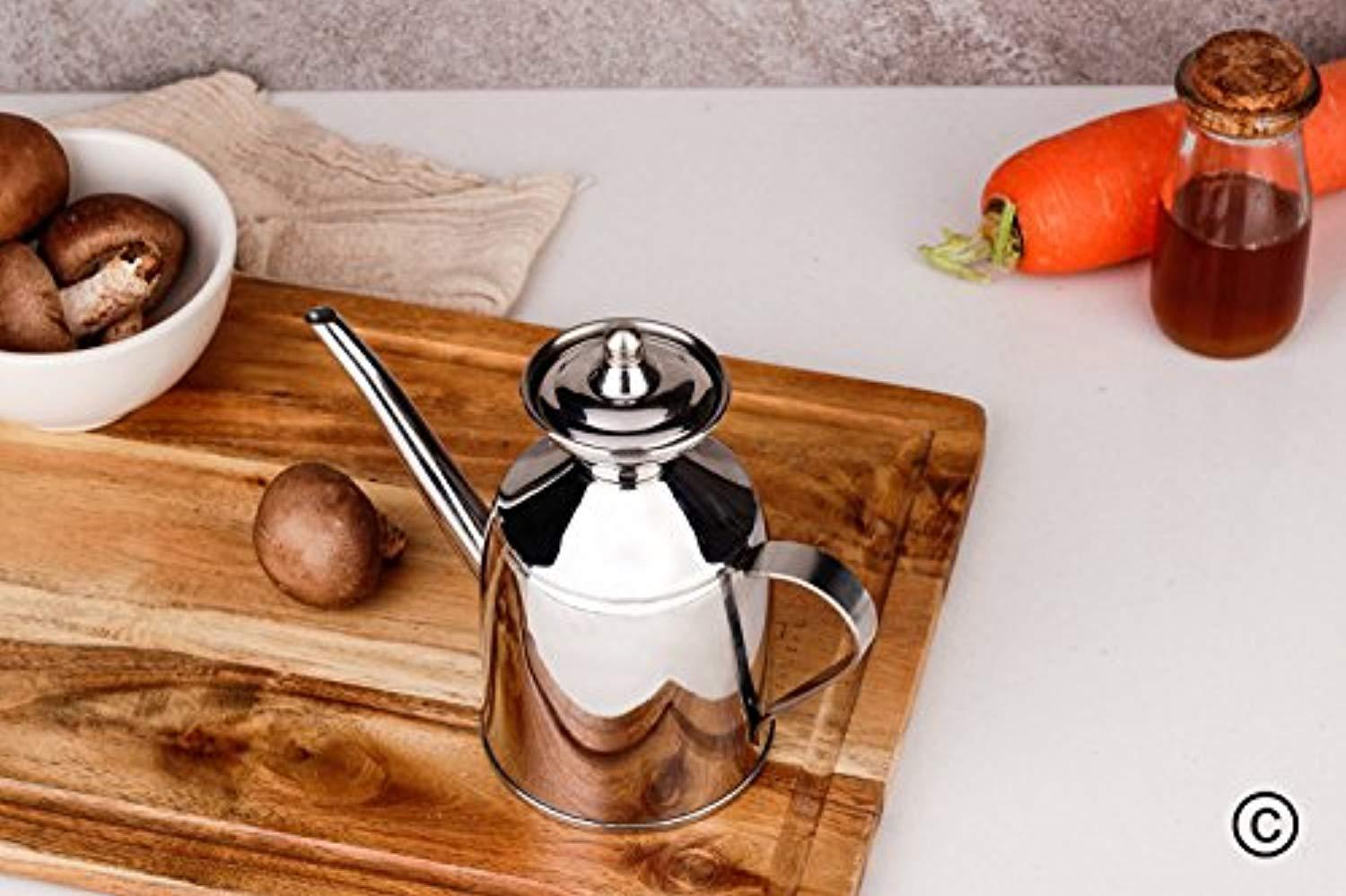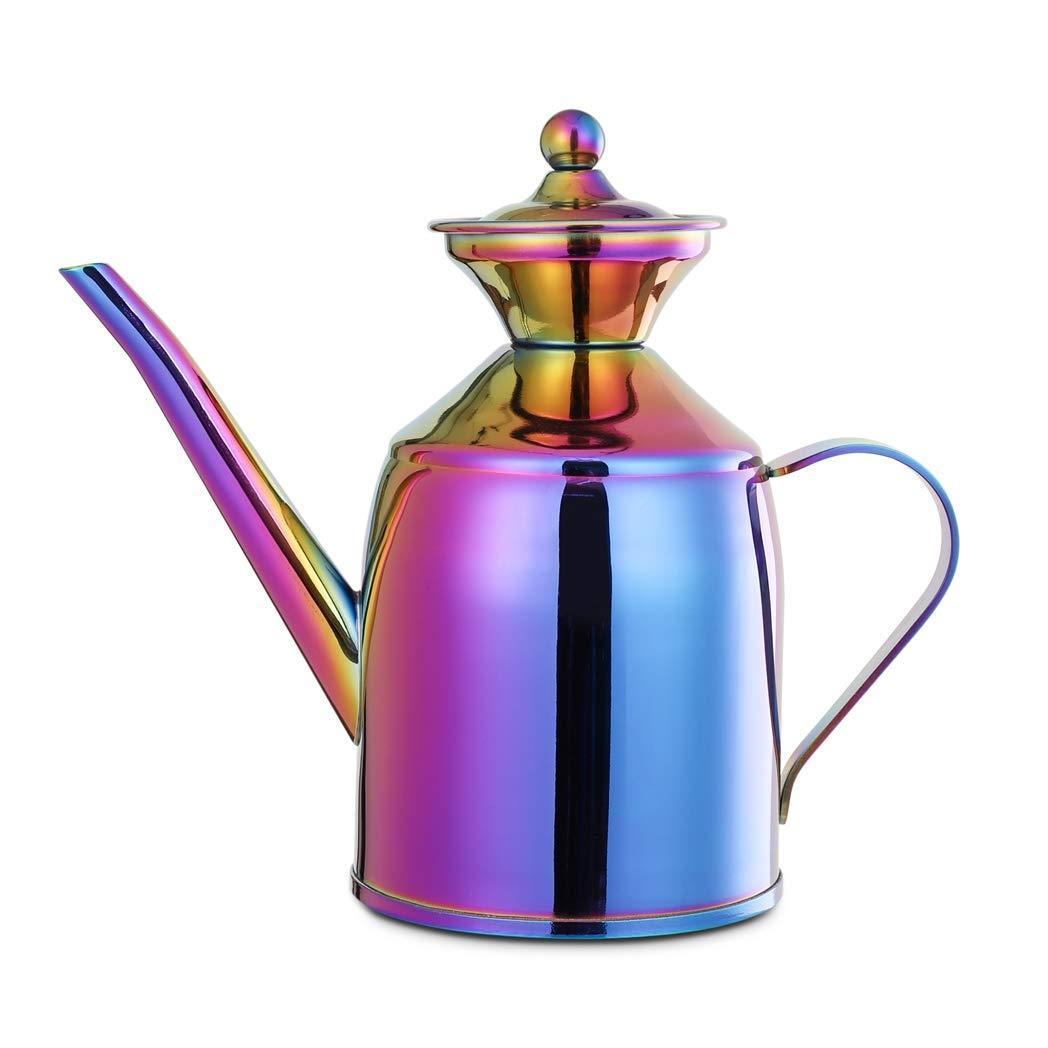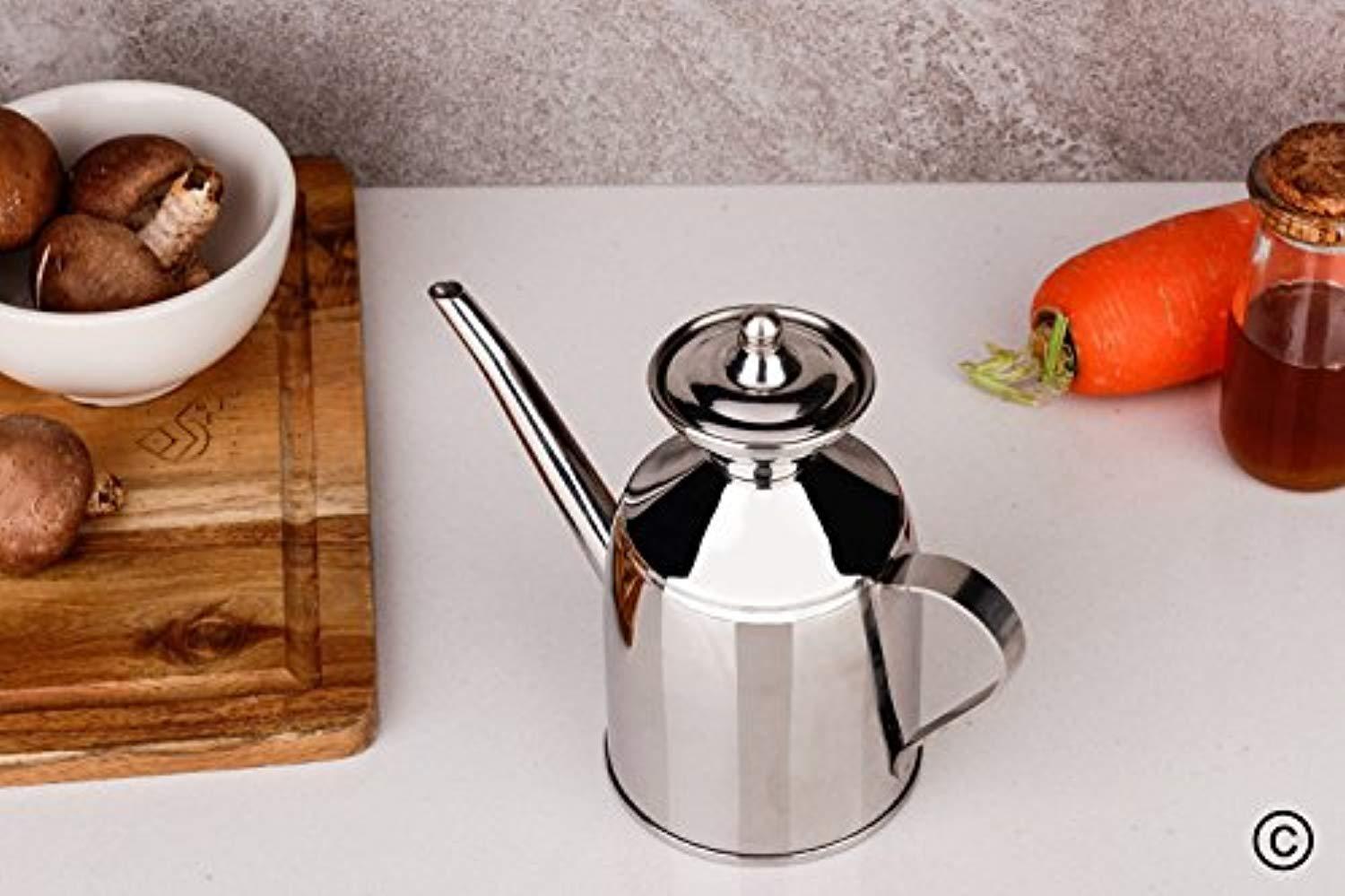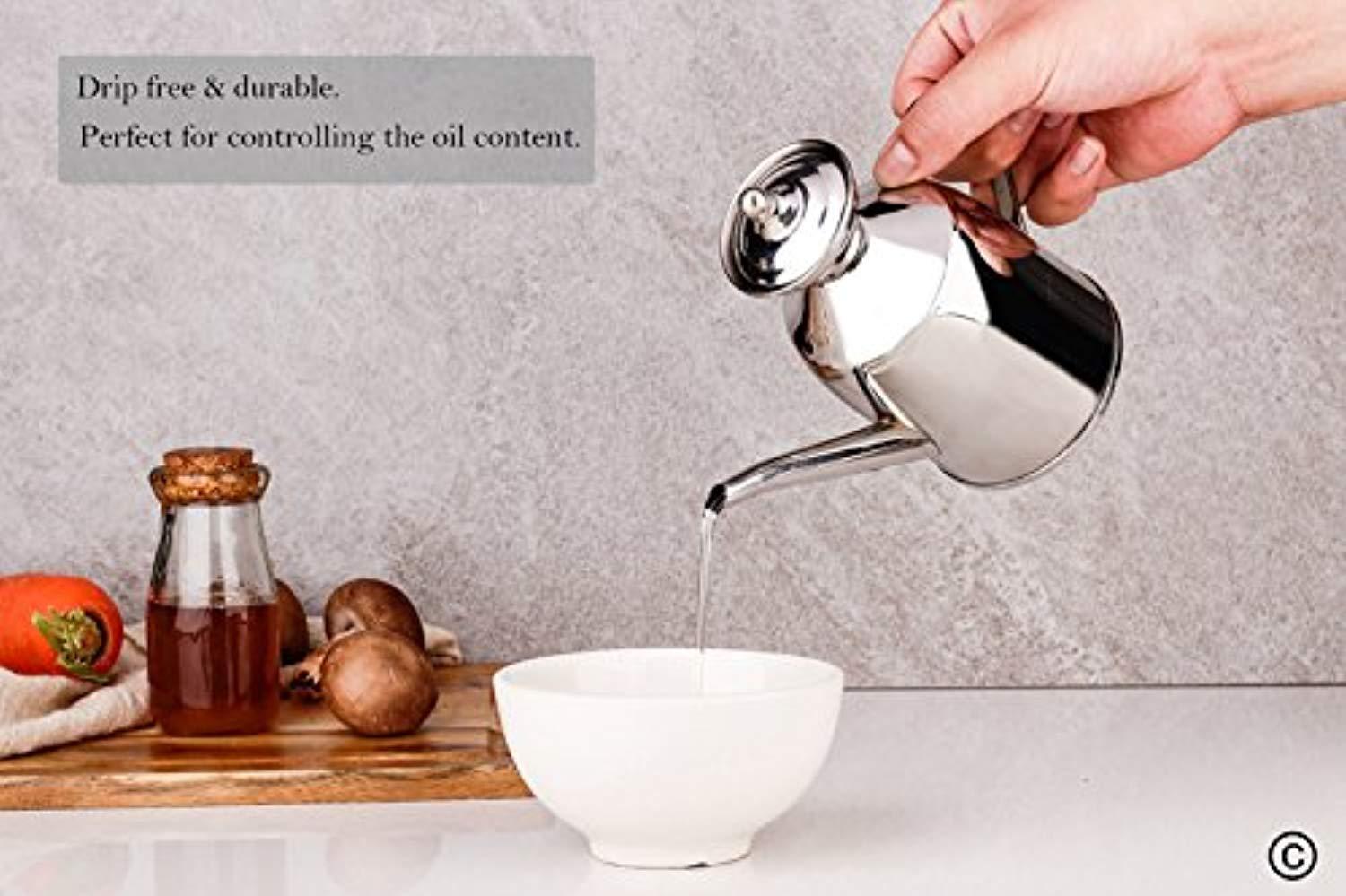 MORE SAFE FOR YOU - Our olive oil can is made of 18/8 stainless steel materials, ideal for storing and keeping the coking oil fresh, and the oil is protected from light. This is a wonderful addition to a kitchen, especially if you cooking with vegetable oil everyday. This gives you a controlled pour, you won't over-oil anymore. Goose neck design, excellent for pouring oil whether in a wok or a pan or best dressing for salad. Buy this olive oil dispenser bottle for your safe cooking. DRIP FREE | STURDY TECHNOLOGY - Very nicely made and durable oil dispenser and olive oil bottle. No seams to leak. No leaks out of the lid during pouring from a full can either. The handle is sturdy and the weld is good. The cap fits precisely. Drip free oil bottle, perfect for using daily. Please don't fill the can to capacity. The sudden increase in air pressure from putting the tight-fitting lid on quickly can cause oil to spurt out the spout. APPEARANCE IS UNBEATABLE - No messy oily kitchen again! Beautiful and perfectly functional. Extremely attractive design looks great in your modern kitchen! The shiny stainless steel oil canister is beautiful out on the counter or tabletop. Best solution for pouring cooking oil and you will enjoy your cooking with it everyday! Perfect for olive oil, fish oil, soy sauce, coconut oil, oil vinegar, sesame oil, avocado oil, almond oil dispenser. CONVENIENT TO USE AND WASH - The opening at the top of the olive oil cruets is large enough to fill without a funnel. Oil can go exactly where you want it with complete control of the drizzle. Oil can be added without a funnel or any worry of spillage during filling. It's much prettier than a glass bottle, also much better than all of the plastic products that have flooded this category. A kitchen material container, used for food jar, or stainless steel food storage. 100% SATISFACTION GUARANTEE - Better than your expected. For any reason, you can enjoys a 30-day money-back guarantee. We promise every customer with 100% fine after-sell service.
