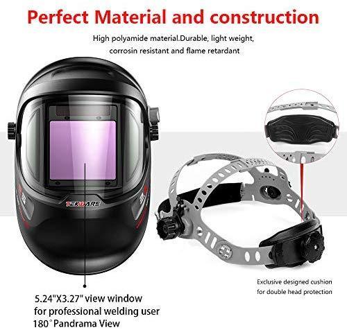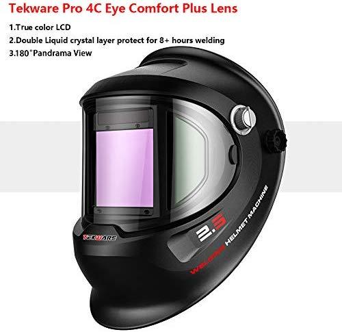 Tekware Welding Helmet 4C Lens Technology Solar Power Auto Darkening Hood True Color LCD Welder Mask Ultra Large Viewing Area Breathable Grinding Helmets with Adjustable Shade Range
