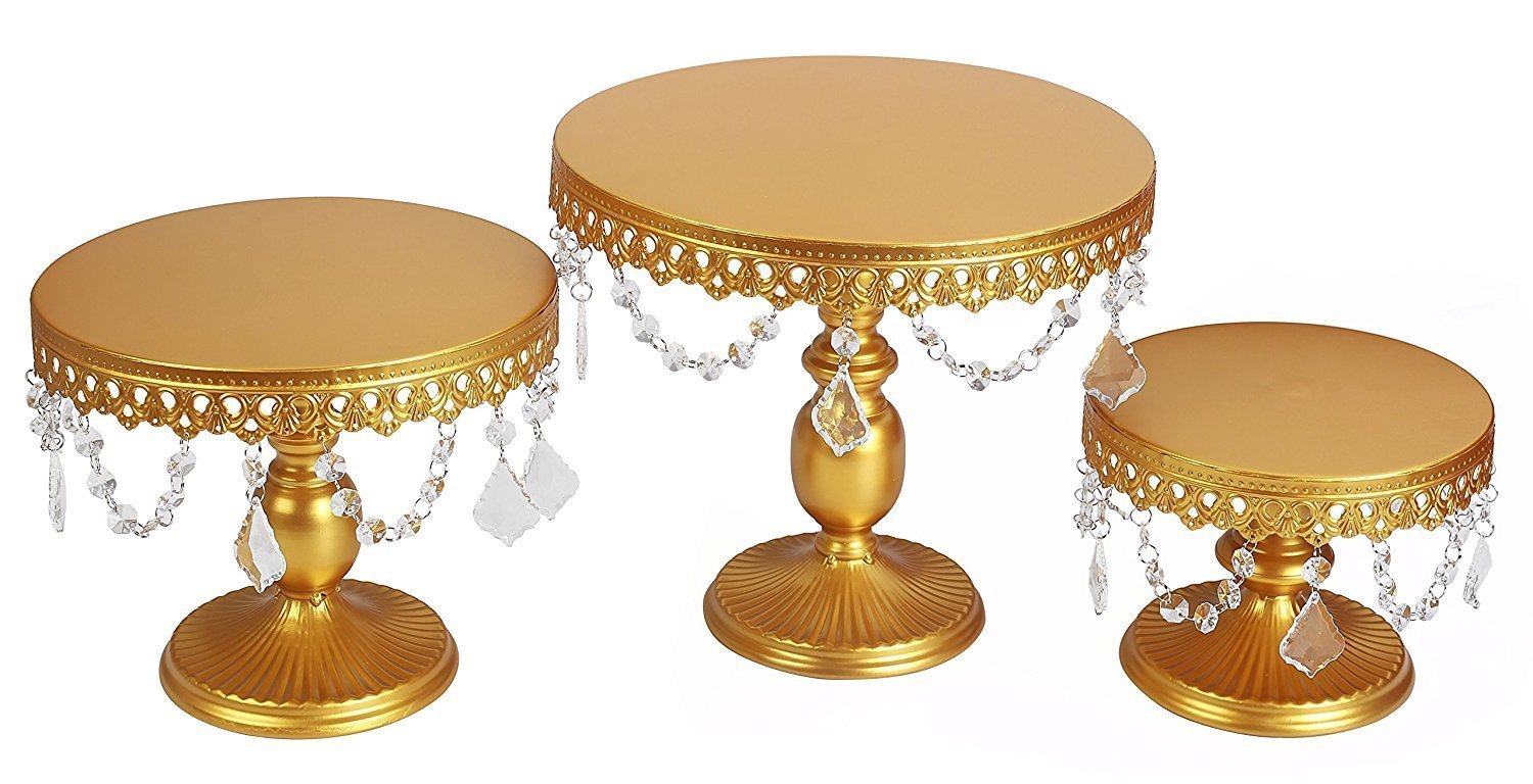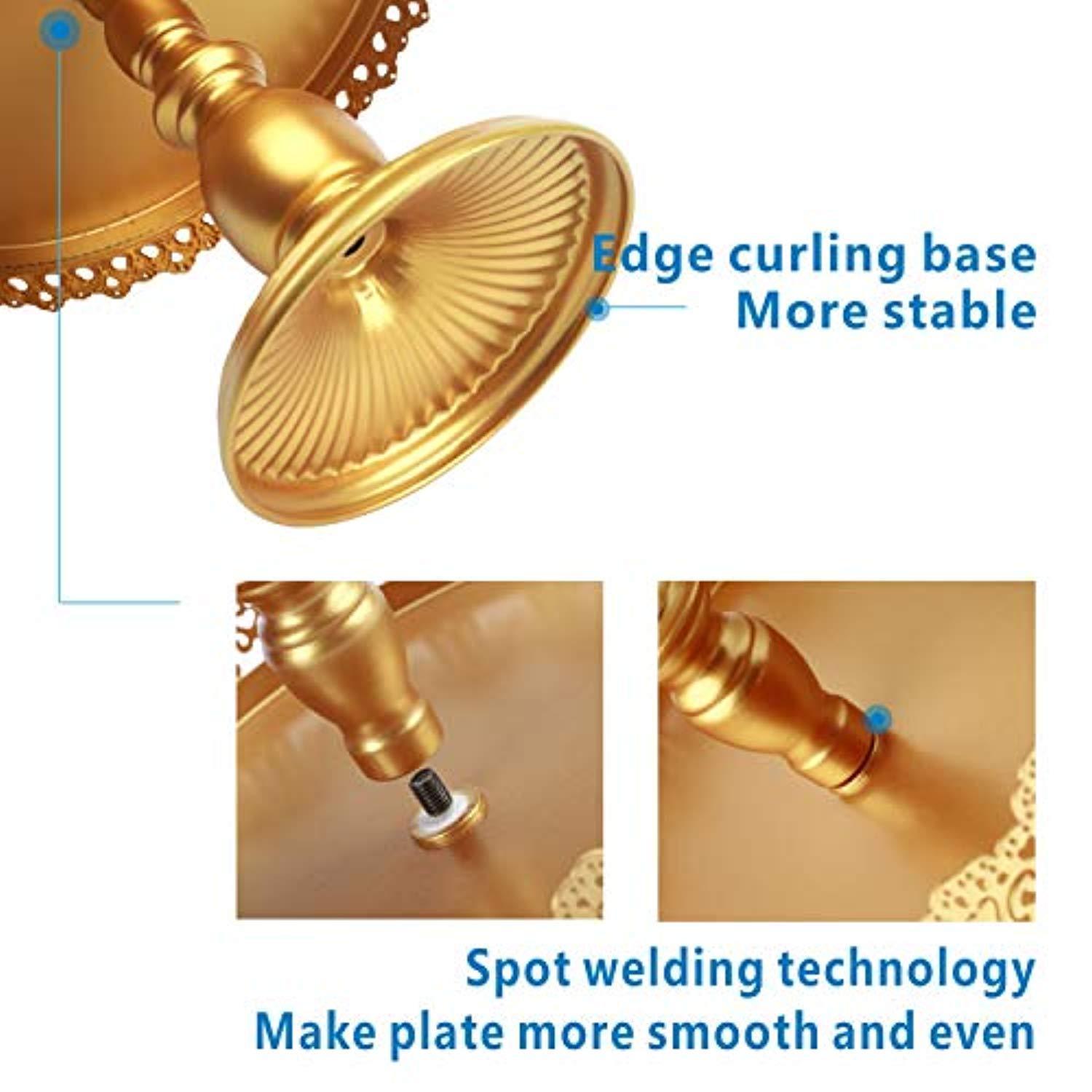 VILAVITA 3-Set Antique Cake Stand Round Cupcake Stands Metal Dessert Display with Pendants and Beads, Gold