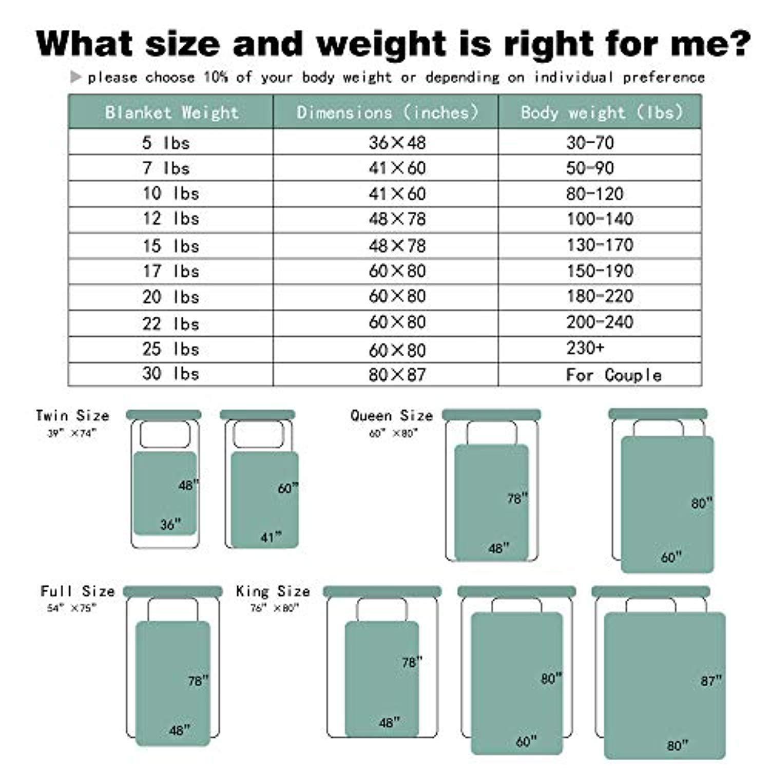 100% Cotton Good Sleep - Weighted blanket engineered to be around 10% of your body weight can offer great all-natural sleep for adults and kids by offering the gentle feeling of being hugged in order to encourage deep and restful sleep CHOOSE & USE INSTRUCTION - Please choose 10% of your body weight + or - depending on individual preference. Due to its weight, it's not necessary to choose oversized blanket. Recommend 48''x78'' for twin bed, 60''x80'' for queen bed, 80''x87'' for king bed. It not only can be used at sleep, but also can be used while reading. PREMIUM MATERIAL - WI Weighted Inner Layer have combined with 100% Premuim Cotton Fabric and Thin Cotton Filler, which is more breathable and soft. The whole blanket is much weightless and suitable for summer. A fan or airconditioner is recommended for HOT SLEEPER IN SUMMER.